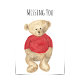 Você tem pensado em alguém que você não vê há algum tempo? Avise-os que você se importa com este simples e doce cartão de aquarela de ursinho de pelúcia. Um urso de pelúcia triste vestindo um suéter de tricô vermelho sentado na frente do cartão, brilhando para o receptor. O mesmo ursinho espreita no espectador na dentro da carta abaixo do texto, "Espero vê-lo em breve!" Este seria um bom cartão para enviar a um amigo de longa data, especialmente um amante de urso ursinho com quem você não fala há algum tempo.