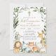 Convide o seu convidado com os nossos elegantes e modernos animais safari. O primeiro convite da comunhão inclui animais verdes eucaliptos garland e aquarelas safari. Personalize com seus detalhes em layout simples e fonte elegante de estilo manuscrito.