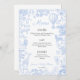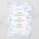Elegante Chá de fraldas azul Toile de Jouy Floral, com um charmoso tema animal safari. Esta modelo de cardápio maravilhosamente projetada mostra um balão de ar quente junto com animais adoráveis de safari como uma girafa, elefante, zebra e leão, todos colocados contra um fundo floral de chinoiserie azul. Com sua estética vintage e sua tipografia graciosa, este menus modelo dá o tom para uma celebração de eterno. Totalmente personalizável para combinar os detalhes do seu evento, é a escolha perfeita para o chá de fraldas com o tema safari de um garoto, combinando encanto e sofisticação.