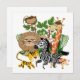 O design de Safari animal apresenta plantas da selva com um leão, zebra, tigre, girafa e macaco! Camisetas de design Safari de animais, fatos-macaco, bíblias, bolsas, canecas, cartões, adesivos, relógios de parede, travesseiros, guardas, capas, capas e muito mais!