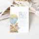 Se você ama um estilo simples de boho, este convite é certo para você. O convite apresenta um design elegante, com um fundo branco e suave. No centro, os detalhes do partido são lindamente escritos num texto azul que exumenta um ar de sofisticação. Animais bonitos de safari sentados em um balão de ar quente sentados no fundo. Convide convidados para a sua festa de chá de fraldas em estilo. A cor e o texto em segundo plano são editáveis.