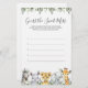 Animais Safari com o tema chá de fraldas adivinhação o doce jogo de bagunça apresenta uma ilustração de animais safari com aquarela e verde-aquarela eucalipto garland e uma elegante letra de estilo manuscrito.