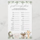 Cartões de jogos de final de mamãe com o tema "Cartões de acabamento de chá de fraldas" de lindos safari apresenta uma ilustração de animais de aquarela e verde-aquarela eucalipto garland e uma elegante letra de estilo manuscrito.