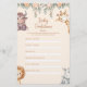 A charming safari-themed baby shower activity designed with soft watercolor jungle animals and warm neutral tones. Guests fill in their predictions for the baby’s arrival, from birth date to eye color, making it a fun keepsake and a perfect fit for gender-neutral, safari, or animal-themed baby showers.