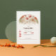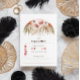Um elegante safari desert boho flores de casamento design RSVP com tipografia ruidosa vermelha e castanha escura.