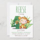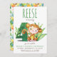 Celebre o seu quarto aniversário com o nosso divertido Convite para Macacos Safari! Perfeito para uma festa na selva, este convite vibrante mostra um macaco giro balançando pelas árvores. Personalize facilmente com os detalhes da sua parte e desfrute da impressão de alta qualidade em papel premium. Faça do quarto aniversário do seu filho uma aventura selvagem com este adorável convite!
