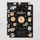 Cute Safari, Selva, animal do zoológico enfrenta o convite preto de aniversários com elefante, girafa, coala, leão, zebra, crocodilo, tigre, panda, pássaros, rinoceronte e hipopótamo.