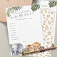 Os Cartões do Bebê Safari Selvagem São a adição perfeita a qualquer chá de fraldas, convidando convidados a compartilhar seus sonhos e esperanças para a nova chegada. Cada carta apresenta um charmoso design de aquarela com carneiros safari, carneiros amados, incluindo elefante, leão, tigre, guaxinim e chimpanzé, todos aninhados entre folhas tropicais por um toque de natureza selvagem. Projetadas especificamente para o chá de fraldas de um menino, estas cartas capturam o espírito da aventura e a alegria de acolher uma nova vida. Como parte da coleção Animais Safari Selvagens, estas cartas de desejos se misturam perfeitamente com a celebração tematizada, fazer de uma experiência memorável e animadora para todos.