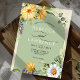 Brilhante, fresco e sem esforço refinado, este Convite Floral de Sage Amarela Elegante traz um toque de sol ao design eterno. Flores amarelas suaves, aliadas à folhagem verde-muda, criam uma paleta naturalmente elegante que se sente alegre e serena. Contra um layout limpo com tipografia delicada, este convite é perfeito para casamentos de primavera ou verão, comemorações de jardim ou casais que amam um pop de cor gentil com um toque sofisticado e orgânico. Uma bela primeira impressão do seu dia alegre.