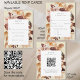 Adote o charme da estação com as placas RSVP de código QR de Casamento outono A2. Estes cartões, adaptados para núpcias de outono, apresentam florais de aquarela numa paleta de cores autóctones, exibindo uma amalgamação da elegância moderna. A matiz neutra estabelece um tom sereno, perfeito para jardins ou casamentos ao ar livre. Com a tecnologia de código QR, os hóspedes podem enviar suas respostas convenientemente, acrescentando um toque contemporâneo a essa prática tradicional. A graça e o calor dessas cartas garantem uma apresentação convidativa e na moda para o seu dia especial.