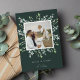 Festivo e elegante em tons de verde-claro, jade cinza e branco, nosso cartão com fotos de festas do Winter Sage apresenta sua foto quadrada favorita emoldurada por folhas botânicas verdes esboçadas sobre um fundo verde-escuro. Personalize com sua saudação personalizada (mostrada com "feliz & brilhante") e sua assinatura de família embaixo.