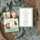 Celebre seu formando com nossos belos e amigáveis anúncios impressos e convites de festas. Esta design feminina chic apresenta um modelo de colagem de fotos com espaço para 4 fotos mais velho em um fundo verde sábio com texto preto e dourado. Personalize a frente com seu anúncio de graduação e adicione detalhes do convite de festas no verso. Use as ferramentas de design para escolher e as fontes e cores de que você gosta ou carregar mais fotos para criar um convite totalmente exclusivo!