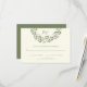 Esta moderna design de casamento rústica apresenta uma coroa verde sage botânica, sobre um fundo de marfim. A parte de trás da placa RSVP também é sábio.