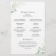 Elegante Programa de Casamento botânico com um layout simples que apresenta um som verde de eucalipto em uma bela sombra de sábio verde no canto superior esquerdo e canto inferior direito. Uma escolha simples e moderna perfeita para um casamento de primavera ou verão.