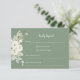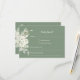 Permita aos seus convidados RSVP com estas impressionantes placas RSVP de sábio floral branco geométrico! Esta design moderna e elegante é a adição perfeita à sua papelaria de casamento. Adorado com delicados florais brancos e fundo sábio que gravatas maravilhosamente com o convite correspondente.