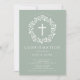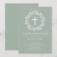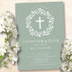 Lindos convites de Confirmação com uma delicada coroa floral e cruz sobre fundo verde sábio. Sacudir nosso convite para ver uma coordenação de volta para um toque especial extra. Visite nosso compro para ver toda nossa coleção religiosa.