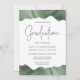 Este convite de festa de formatura de tendência apresenta uma borda superior e inferior de geode de agata de cor d'água em tons de verde de sábio com realces falsos de brilho prateado. A palavra "Graduação" aparece na falso cintilação prateada em letra decorativa moderna de escrita manual. Personalize o convite com o nome do formando em verde-sábio e os detalhes da parte em cinzas de carvão em fundo branco. Uma imagem verde-sábio e agata prateada correspondentes aparece no lado oposto.
