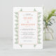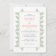 Este convite para o casamento mostra folhas verdes sábias espiando-se das bordas de um coral claro, todas em um fundo branco. O verso é acentuado com um pequeno padrão de folha verde de sábio. Este design é perfeito para um cheio de casamento de beleza natural.