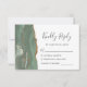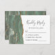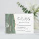 A borda esquerda deste elegante cartão RSVP de casamento moderno apresenta uma faixa verde de cor d'água agada, aparada com falso brilho dourado. O texto está em um script de escrita manual de cinzas de carvão e um tipo de letra de impressão em um fundo branco. O verso apresenta um design verde-sábio e um agate dourado correspondentes.
