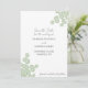 Este elegante salvamento da data apresenta um design de eucalipto simples e mínimo. Bonita para casamentos em todas as estações e locais. Anuncie seu dia especial à família e amigos editando facilmente nomes, data, local e site de casamento para garantir que seus convidados tenham todas as informações de que precisam.