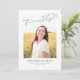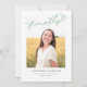 Este anúncio de graduação moderno apresenta a palavra finalmente escrita em verde sábio sobre uma foto de solteiro. A parte traseira do cartão pode ser usada como texto adicional ou como convite.
