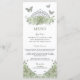 Sage Green Floral Silver Quinceanera Birthday Menu