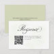 Simplify your wedding RSVP process with this elegant sage green floral QR code insert. Featuring soft botanical accents, refined script typography, and a clean modern layout, this design allows guests to easily respond by scanning the QR code. Perfect for greenery, garden, or minimalist weddings, this insert adds a cohesive and sophisticated touch to your invitation suite while keeping everything beautifully organized.
