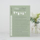 Entra nos teus hóspedes com este charmoso jogo minimalista "Adivinhem quem". A linha de roupa desenhada à mão com roupas pequenas de bebê em um fundo verde macio proporciona uma quebra-gelo perfeita e uma atividade divertida para o seu chá de fraldas. Este jogo faz parte da coleção de Chás de fraldas Minimalistas Clothesline, fazer que seja uma bela manutenção e uma maneira fácil de garantir que seu evento seja perfeitamente coordenado. ©Susanne Sachers - 🌞 da mente ensolarada