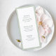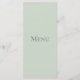 Elevate your reception tables with this elegant minimalist wedding menu card designed in a soft sage green palette. Featuring refined serif typography and a clean, vertically structured layout, this menu beautifully presents each course with understated sophistication. The balanced spacing and timeless design create a polished look that complements both classic and modern wedding styles. Perfect for garden, greenery, or neutral-themed celebrations, this menu card adds a cohesive and graceful touch to your table setting. Easily customize each course to reflect your unique dining experience.