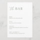 Um símbolo de casamento moderno e elegante para o menu "o bar" apresenta um design verde e branco minimalista. Personalize com o menu da bebida de casamento com a modelo fácil de editar, com uma fonte elegante de script e uma fonte de serifa elegante. Veja os itens correspondentes na coleção "Sage Green Modern Elegant".