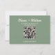 Cartão de Gabinete RSVP de Código QR de Casamento Verde Sage | Elegante Greenery Digital Reply Simplifique seu planejamento de casamento com nossa elegante placa de gabinete RSVP de código QR de casamento verde Sage! Este cartão apresenta belos sotaques verdes verdes, sagazes, acrescentando um toque sereno e sofisticado à sua suíte de casamento. A inclusão de um código QR oferece aos seus convidados uma maneira conveniente e moderna de RSVP digitalmente, fazer o processo de resposta sem esforço para todos. Este cartão verde RSVP é perfeito para casais que apreciam elegância clássica e eficiência moderna. Os calmantes tons verdes de sábio e as delicadas ilustrações botânicas evocam jardins exuberantes e uma estética eterno, ideal para jardins, rupias ou casamentos contemporâneos. Ao direcionar convidados para seu site de casamento ou um formulário de RSVP on-line dedicado por meio do código QR, você simplificará as respostas de rastreamento e coletará todos os detalhes necessários sem problemas. Personalize facilmente esta placa de gabinete RSVP de código QR com o URL do seu site de casamento e quaisquer instruções específicas para os seus convidados. Você pode personalizar as fontes e o layout para combinar perfeitamente com seus convites principais de casamento. Impresso em estoque de cartão de alta qualidade, este cartão complementará seu pacote de artigos de papelaria lindamente. Coordene estas bonitas Cartões de Gabinete RSVP de Código QR de Casamento Verde Sage com os seus principais convites, cartas de agradecimento e outras papelaria de casamento para uma celebração perfeitamente coesa e memorável. Clique em "Personalizar agora" para personalizar sua placa de gabinete RSVP de código QR de casamento verde Sage e simplificar seu gerenciamento de convidados! Sage green QR RSVP, cartão de resposta elegante de verde, RSVP de casamento digital, casamento com código QR personalizado, gabinete verde moderno, RSVP de casamento botânico, cartão verde-sábio online RSVP, papelaria de casamento verde-verde, resposta de código QR