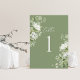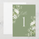 Soft sage green tones paired with organic greenery watercolor florals create an elegant and calming table number design for modern garden weddings.