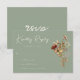Responda em estilo com este Cartão RSVP de Casamento de Bela Marinha Verde, projetado para casais planejando um evento charmoso e elegante. Este design minimalista apresenta um fundo verde macio, flores silvestres de aquarela em tons de queda branca (laranja queimada, terracota, amarelo e creme) no fundo, e caligrafia creme moderna para um aspecto belamente equilibrado. Perfeito para casamentos de vassoura, rústica, flor silvestre, outono ou jardim, este cartão RSVP coordena-se perfeitamente com o seu pacote de casamento e ajuda os convidados a responder com facilidade. Personalize com opções de refeições, datas de RSVP ou solicitações especiais para atender às suas necessidades de eventos.