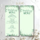 Traga um toque fresco e vibrante para sua recepção de casamento com este elegante menu verde. Com folhas de aquarela, verde macio e tipografia clássica, esta modelo é perfeita para um casamento de verão, jardim ou destino. Personalize facilmente o texto para corresponder aos detalhes da refeição e do evento. Uma bela adição à sua capa de sopa de casamento.