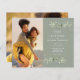 Apresentando delicadas folhas de aquarela em um fundo verde-sábio, este convite de casamento botânico pode ser personalizado com suas fotos especiais e detalhes especiais do dia do casamento. Projetado por Thisnotme©