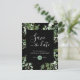 Sábio luminoso elegante, preto e folhagem "Salve a Data" com eucalipto e uma dispersão de pontos dourados. Um estilo contemporâneo embelezado com caligrafia romântica.
