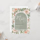 Floral Flores Flóridas Formando Convite de festas em rosa-pincel e verde-sábio. O script moderno e de tendência para "Partido Formando" é incluído como parte do design. Todo o outro texto é personalizável, incluindo o ano de graduação, o nome e os detalhes da festa. © Kimbellish, LLC