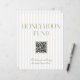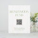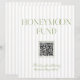 Um letreiro de fundo de lua de mel moderno com listras verticais bege suave combinadas com tipografia verde-salvia refinada. Projetado com um layout limpo e código QR integrado, oferece uma maneira simples e elegante para os convidados contribuírem para a sua lua de mel.