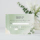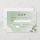 These RSVP cards feature a soft sage green watercolor background, framed with a slim white border and delicate eucalyptus accents that echo your matching invitation suite. The clean, airy center leaves ample room for guest responses while the organic botanical details add an understated, nature-inspired elegance perfect for modern, rustic, or garden weddings.