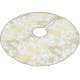 Esta saia da árvore de Natal é mostrada em um ouro bonito e em um design festivo branco do impressão do floco de neve do feriado.