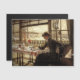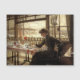 Era vitoriana a pintura de uma jovem mulher na cabine do seu navio com uma janela ampla tendo em vista os navios no porto. Pintura de arte vinda da Inglaterra por James Tissot.