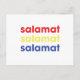 Este design de cartão-postal minimalista apresenta a mensagem "salamat" ("obrigado você" no Tagalog) em vermelho, amarelo e azul espaçados uniformemente em cima um do outro na frente. Poderia ser usado para enviar a alguém uma mensagem de gratidão.