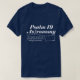 A camisa é marinho azul com a impressão em tela branca do logotipo e missão Astronômica Psalm 19 na frente e no verso. O verso também inclui o Salm 19:1-2 (NIV.)