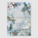 Elegante design floral rústico com pássaros azuis de vintage salgados em boughs sagrados e pinheiros, rosas de cão branco, fazenda quintal com roda de água, caligrafia, rolantes e flores brancas com música "Home Sweet Home" em moldes ornamentosamente gravados. O fundo apresenta céu azul pálido com nuvens brancas.
