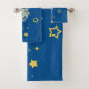 O conjunto de toalhas mostra uma silhueta de Star Skater em azul e amarelo. Para obter informações sobre personalização, entre em contato com info@KBMD3signs.com