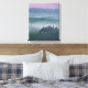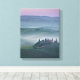Impressão de paisagem vertical canvas de um nascer do sol nebuloso com céu cor-de-rosa e névoa entre as colinas tucanas sobre agriturismo podere il Belvedere na fazenda de Valdorcia (Vale de Orcia) entre Pienza e San Quirico na Toscana, Itália.