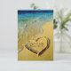 Um belo coração desenhado na areia com as palavras "RSVP" no meio. No fundo você encontrará um fundo arenoso com um coração no fundo. Excelente para a RSVP do casamento de destino. A placa é totalmente personalizável, então adicione e exclua, dê seus próprios toques para torná-la realmente especial.