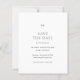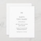 Casamento de orçamento elegante salve a data com um design simples e clássico com seu monograma e seus detalhes de evento em uma fonte serif tradicional.