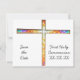A cruz de vidro contida enfeita a frente deste convite único. Personalize a parte frontal e traseira com suas informações de convite. ***Você pode mudar a cor de fundo. ***Veja também carimbos de postagem correspondentes. com
