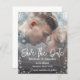 elegante guarde a data, chic white calliografia em neve flocos de neve Foto de casamento Convite